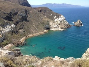 View of Scorpion Harbor with Anacapa Island in the background (another of the park’s islands)