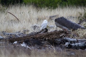 Snowy owls are not endangered; their status, in fact, is that of “least concern.” They spend summers up north of the Arctic Circle, taking advantage of lots and lots of daylight to hunt and fatten up, and then they fly south in the winter. But the thing is, they don’t usually come to Oregon. Last year they did, and apparently this year they’re back, but it’s pretty unusual. Another unusual thing about snowy owls is that they’re diurnal, so they hunt in the daytime and at night. That’s lucky for us, because they’re not holed up somewhere during the day! You can read lots about the snowy owl at the Cornell Lab of Ornithology site, here.