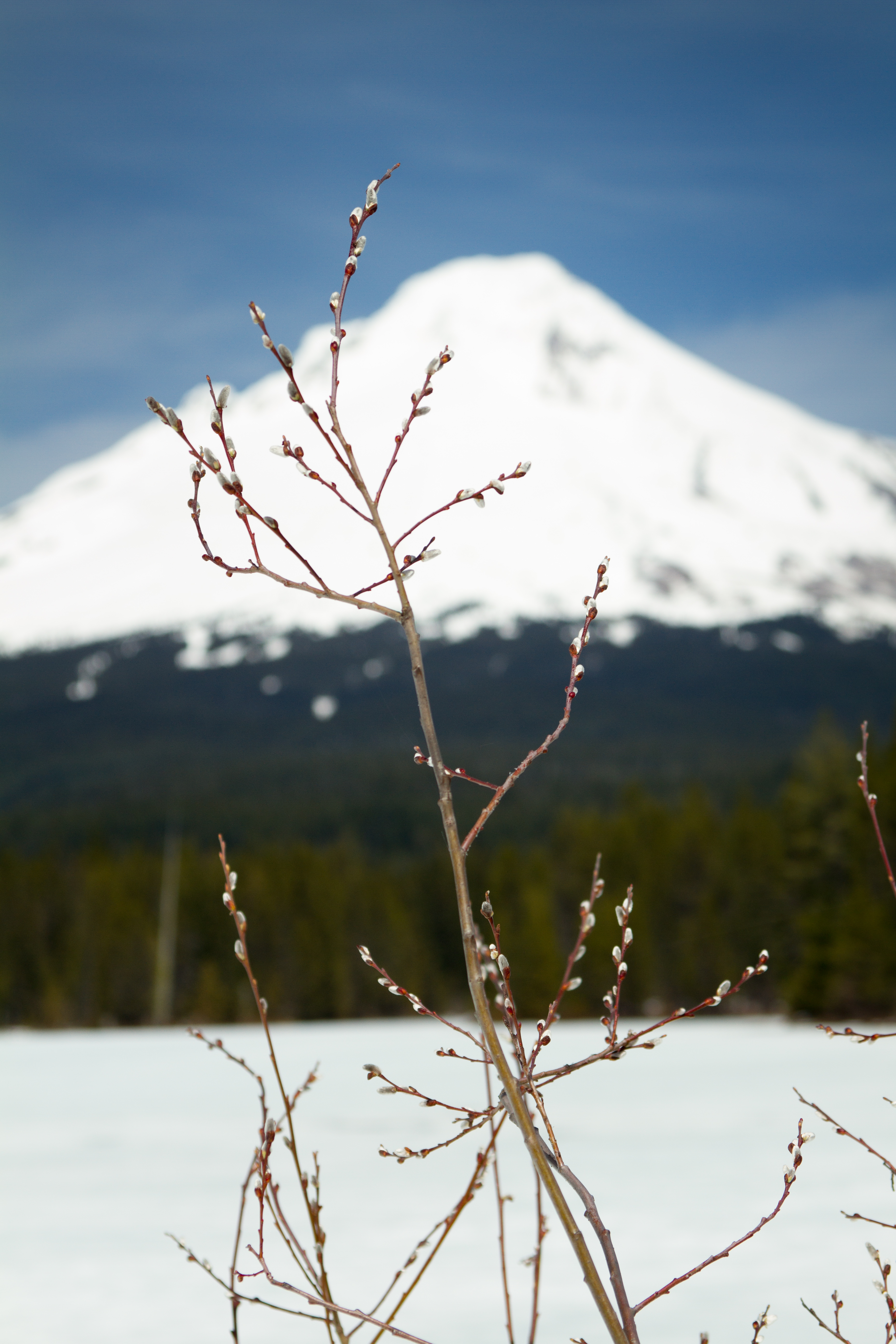 I really, really wanted to go snowshoeing this year, and we had a trip all planned, but then we got sick, and it didn’t happen. Oh well, I just figured we’d put that on the list for next year, and that was ok. But then we went up to Mt Hood a few weeks ago (April, mind you) and stopped in at the Zigzag Ranger Station to ask about a hike. I was hoping for a hike where we could see the mountain reflected in a lake. The ranger said everything was still snow covered but suggested we snowshoe into Trillium Lake!