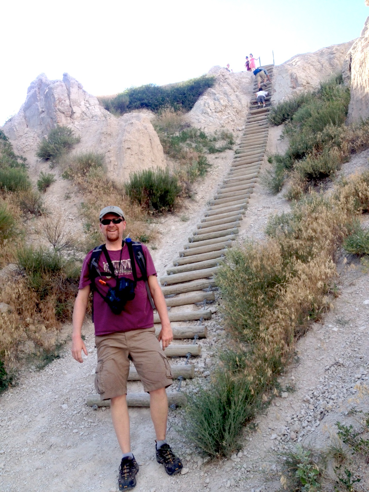 Jeff at the bottom of the Notch Trail ladder, Badlands, NP
