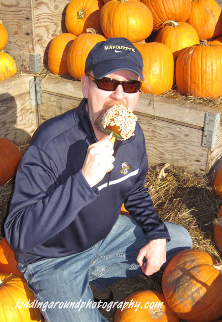 Our final stop was the Bella Organic farm. I’m sure this place (and all the pumpkin patches) gets crazy crowded on weekends, so I’d suggest getting to the island early, but they have lots of fun family activities here, like the cow train and photo opp spots and a corn maze. The corn maze theme this year: Voodoo Doughnuts! Of course they sell lots of organic produce, too. We got some yummalicious acorn squash and apples, and some local cheese curds. We would have taken more pictures of all the fun stuff, but we were too distracted by the glorious caramel apples they had there to remember to do that. We did have the presence of mind to split one, and they will even cut it for you so it’s easier to eat and no one steals more than his share…