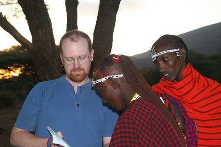 Practicing Swahili and English with Maasai warriors