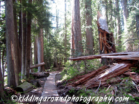The hike itself is easy. It’s a mostly level (there are a few ups and downs), packed dirt trail, with several boardwalk sections. It goes through old growth forest right along the lake’s edge the whole way. Some of the cedars in here are 12 feet across, and I have no idea how tall the trees get, but they go waaaaaay up there!
