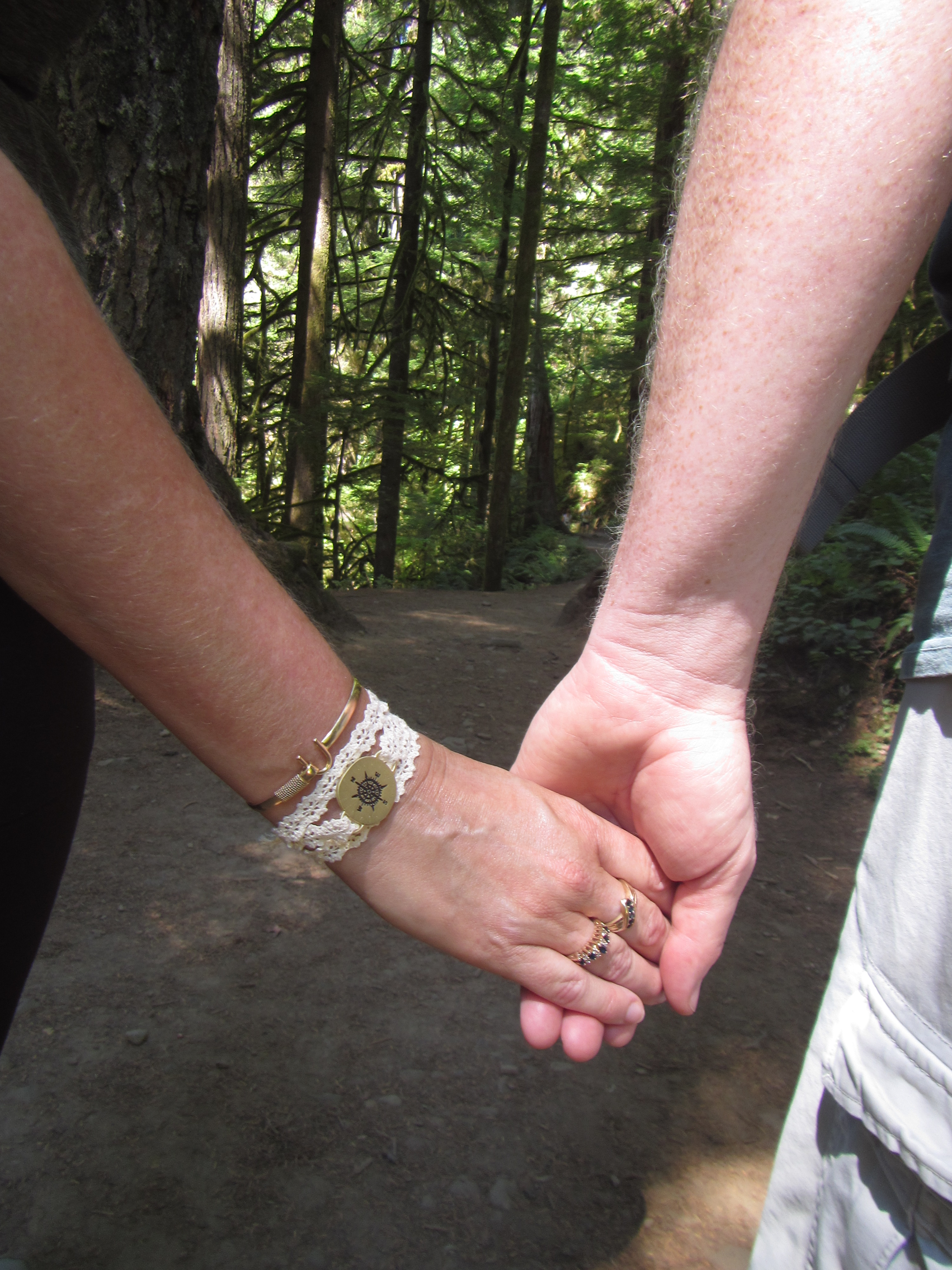 Living the Natural Life out for a hike. My niece with the Cabana headband and me with the Boho Bandeau worn as a scarf