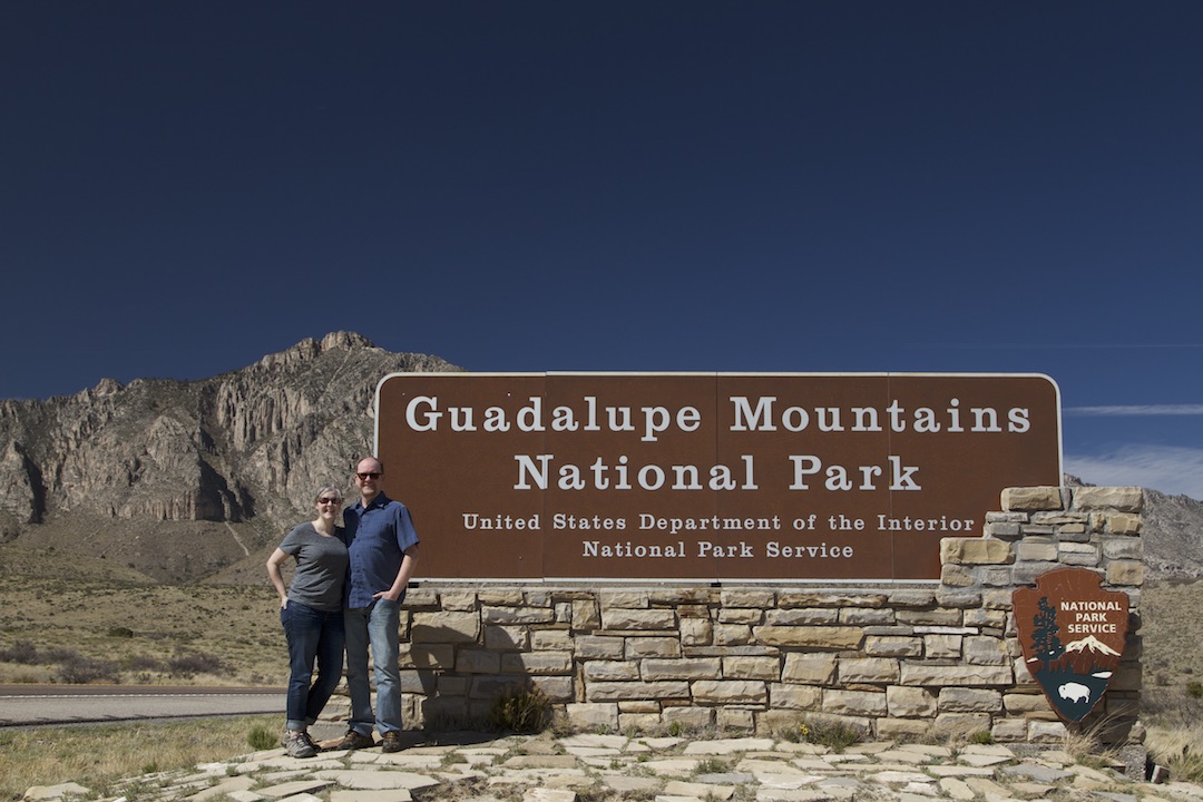 If you’ve read this blog for any time at all, you surely know we’re on a quest to visit all the national parks, and we continue to creep closer to our long-time goal – adding three parks in West Texas and New Mexico this spring break. Our first stop after leaving El Paso was at Guadalupe Mountains National Park. After driving through miles of flat, arid desert, we saw the mountains rising in the distance. Checking the GPS, we realized they must be HUGE, because we were still quite a distance from them. We were right. They soared into the bright blue sky, a stark and beautiful contrast to the area all around them.