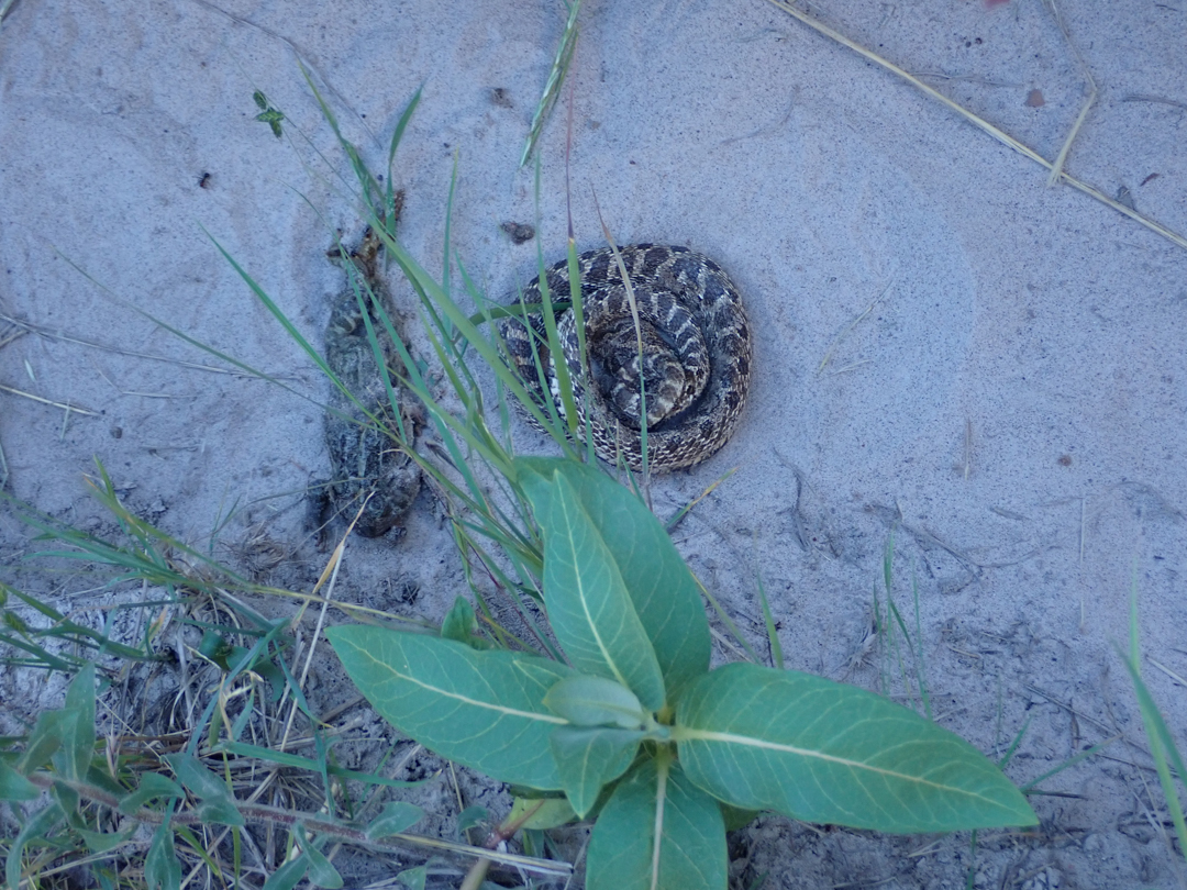 Bull Snake dinner interruptus. He was trying to eat that frog!